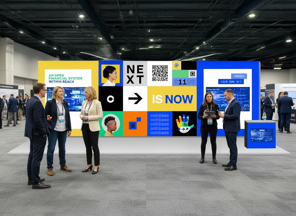 Translate Coinbase’s employer brand into a scalable visual system for high-visibility recruiting events.